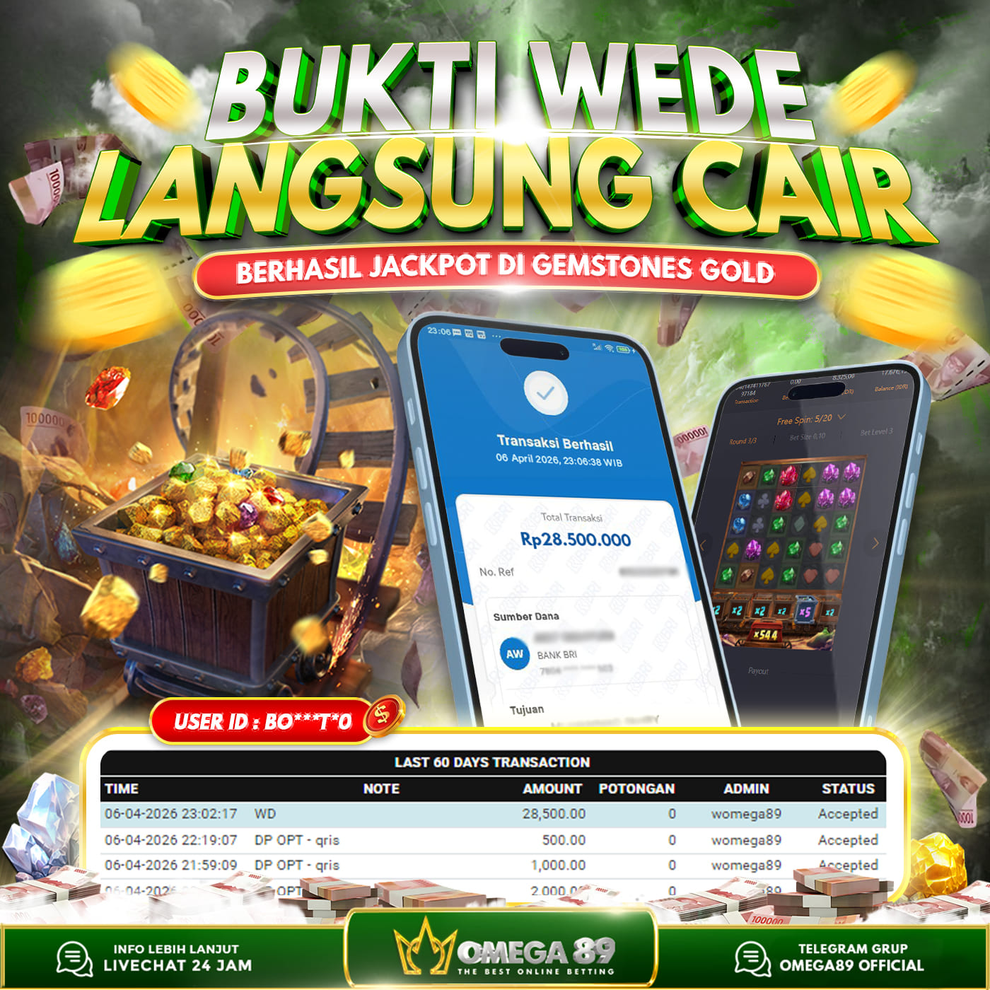 Selamat untuk Member OMEGA89 dengan User ID : BO***T*0 Telah berhasil memenangkan jackpot besar dalam permainan slot GEMSTONES GOLD sebesar Rp.28.500.000, Lalu setelah melakukan pengisian formulir untuk melakukan withdraw dengan jeda waktu 3–5 menit pihak Customer Service Omega89 akan melakukan proses transfer ke rekening pribadi milik User ID tersebut dan dana yang sudah di withdraw bisa langsung di cairkan oleh pemenang jackpot. Bukti transfer atau pembayaran yang di berikan pihak Omega89 adalah bentuk bukti pemaabayaran yang VALID/SAH karena langsung dari bank tujuan yang digunakan.