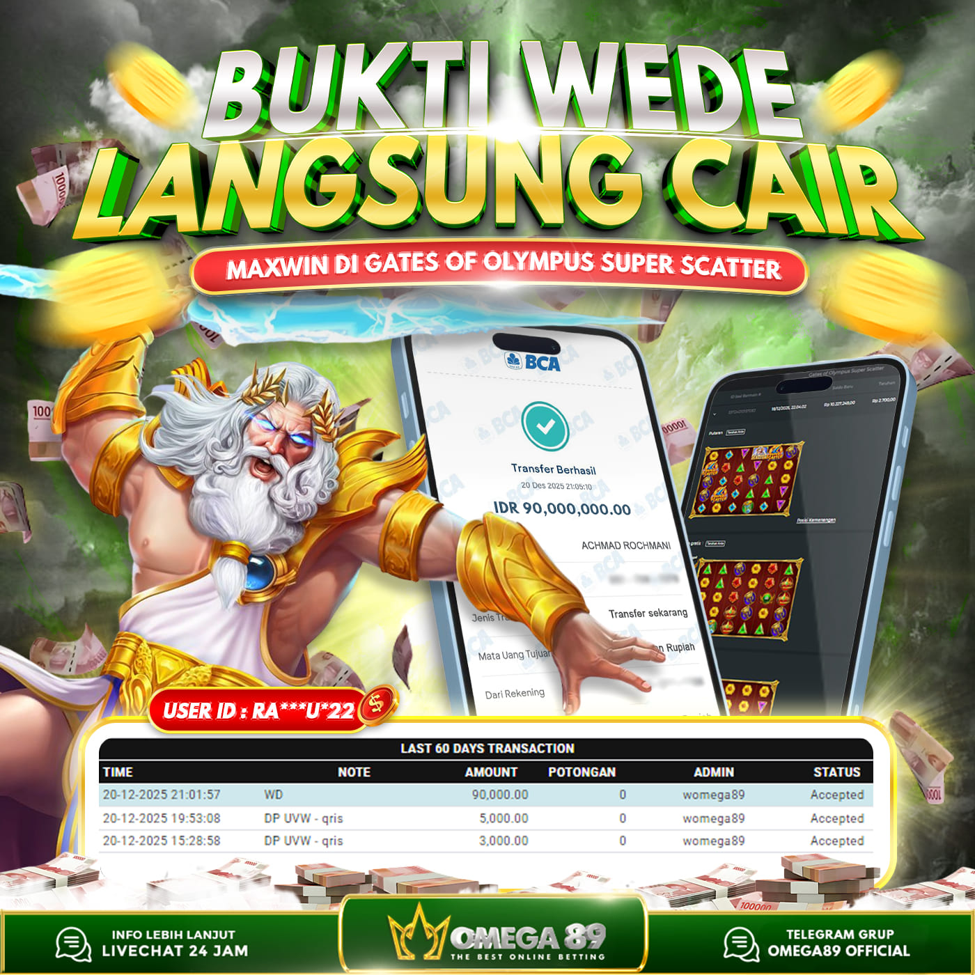 OMEGA89 JACKPOT DI GATES OF OLYMPUS SUPER SCATTER Rp.90.000.000,- LUNAS!!