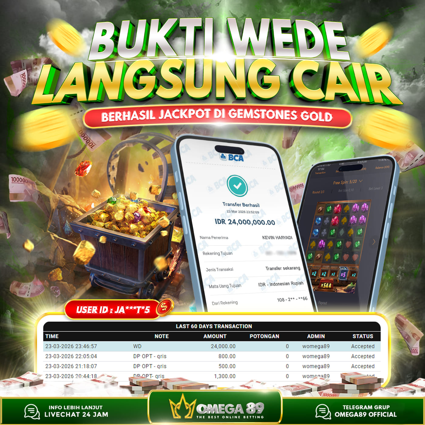 Selamat untuk Member OMEGA89 dengan User ID : JA***T*5 Telah berhasil memenangkan jackpot besar dalam permainan slot GEMSTONES GOLD sebesar Rp.28.000.000, Lalu setelah melakukan pengisian formulir untuk melakukan withdraw dengan jeda waktu 3–5 menit pihak Customer Service Omega89 akan melakukan proses transfer ke rekening pribadi milik User ID tersebut dan dana yang sudah di withdraw bisa langsung di cairkan oleh pemenang jackpot. Bukti transfer atau pembayaran yang di berikan pihak Omega89 adalah bentuk bukti pemaabayaran yang VALID/SAH karena langsung dari bank tujuan yang digunakan.
