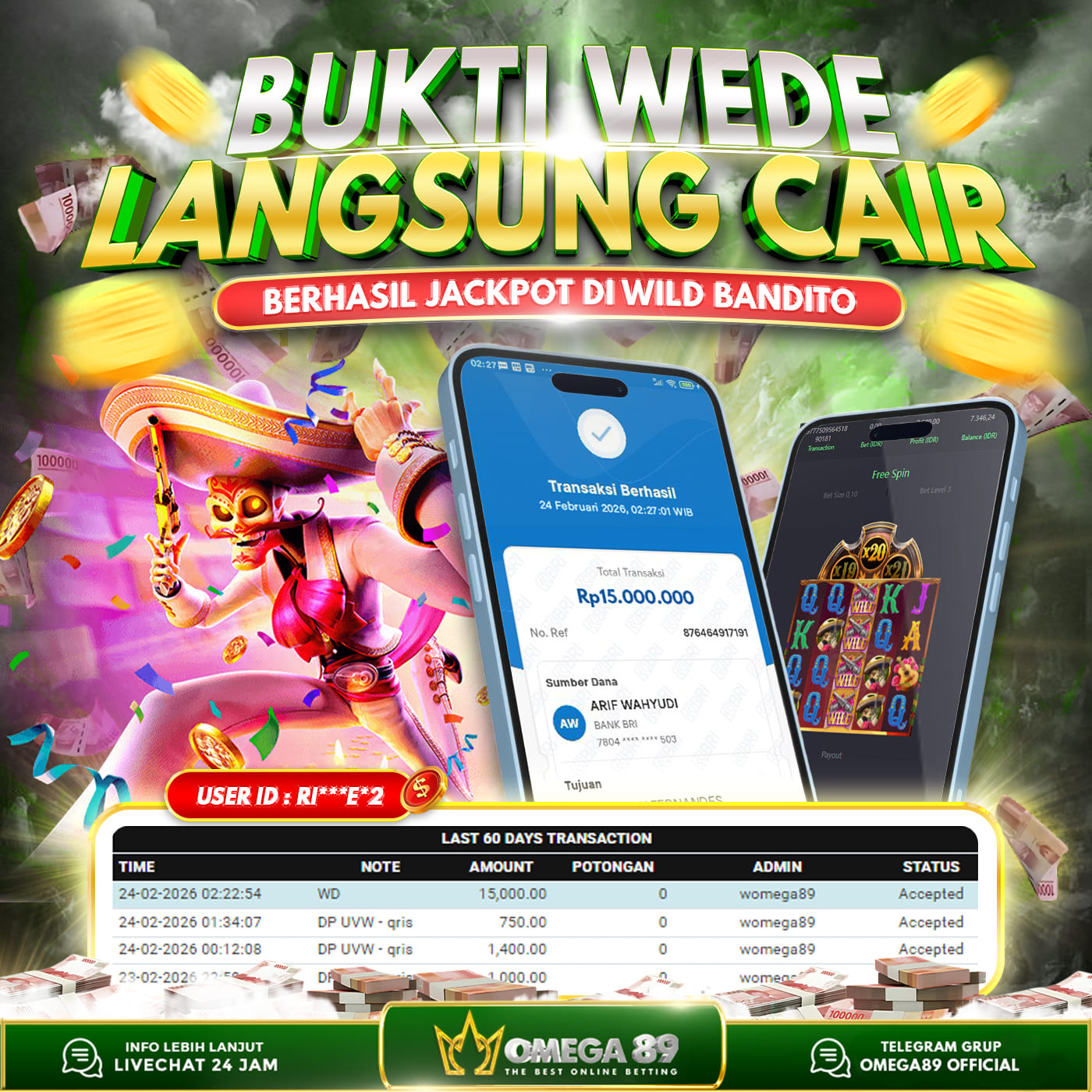 Selamat untuk Member OMEGA89 dengan User ID : RI***E*2 Telah berhasil memenangkan jackpot besar dalam permainan slot WILD BANDITO sebesar Rp.15.000.000, Lalu setelah melakukan pengisian formulir untuk melakukan withdraw dengan jeda waktu 3–5 menit pihak Customer Service Omega89 akan melakukan proses transfer ke rekening pribadi milik User ID tersebut dan dana yang sudah di withdraw bisa langsung di cairkan oleh pemenang jackpot. Bukti transfer atau pembayaran yang di berikan pihak Omega89 adalah bentuk bukti pemaabayaran yang VALID/SAH karena langsung dari bank tujuan yang digunakan.