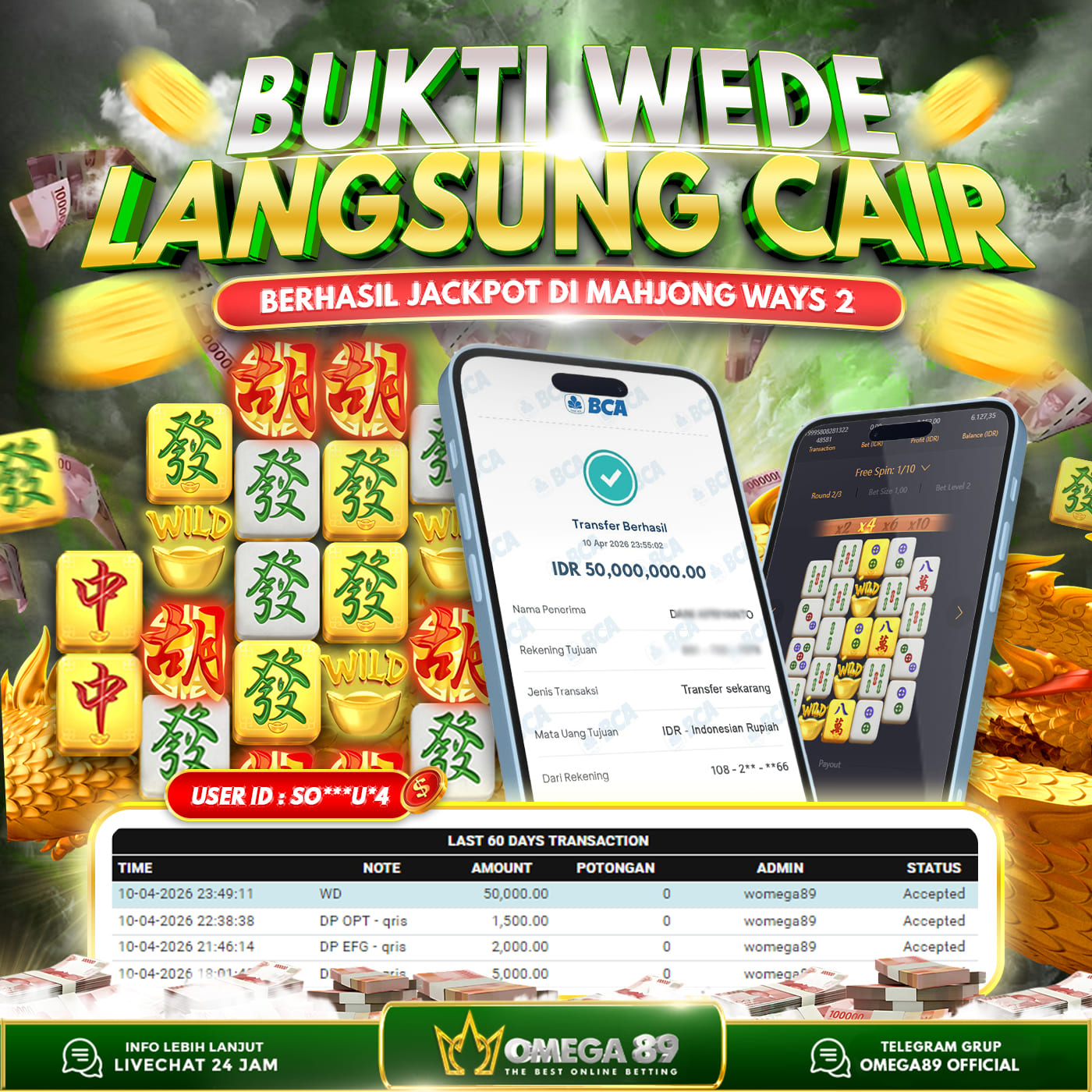 Selamat untuk Member OMEGA89 dengan User ID : HA***A*5 Telah berhasil memenangkan jackpot besar dalam permainan slot MAHJONG WAYS 2 sebesar Rp.50.000.000, Lalu setelah melakukan pengisian formulir untuk melakukan withdraw dengan jeda waktu 3–5 menit pihak Customer Service Omega89 akan melakukan proses transfer ke rekening pribadi milik User ID tersebut dan dana yang sudah di withdraw bisa langsung di cairkan oleh pemenang jackpot. Bukti transfer atau pembayaran yang di berikan pihak Omega89 adalah bentuk bukti pemaabayaran yang VALID/SAH karena langsung dari bank tujuan yang digunakan.